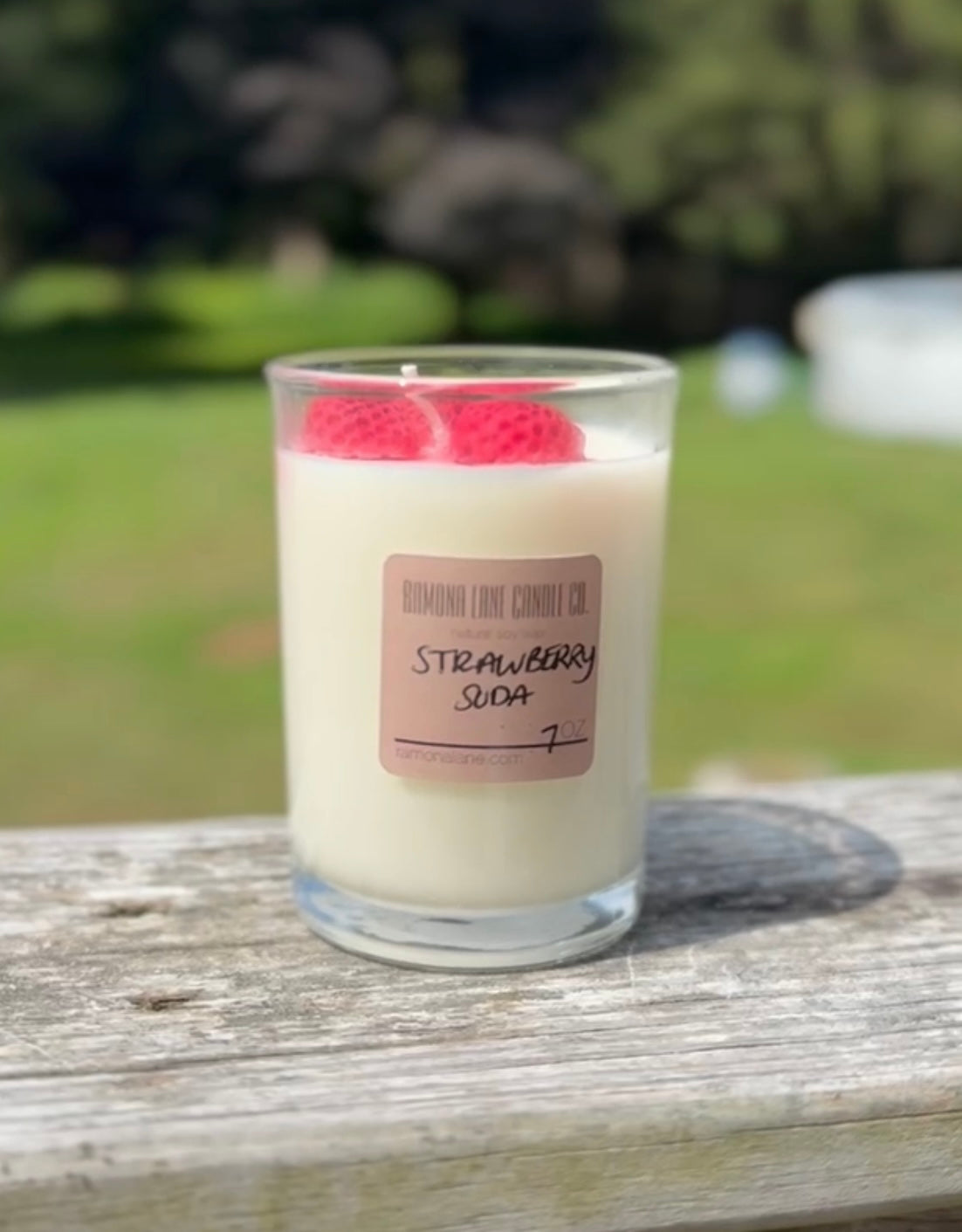 Natural soy wax flakes, fragrance oil, candle dye, cotton wick.